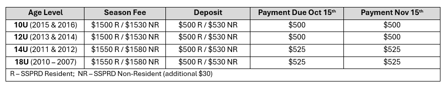 Please take the time to read the following information before registering your player for the 2025-2026 season.