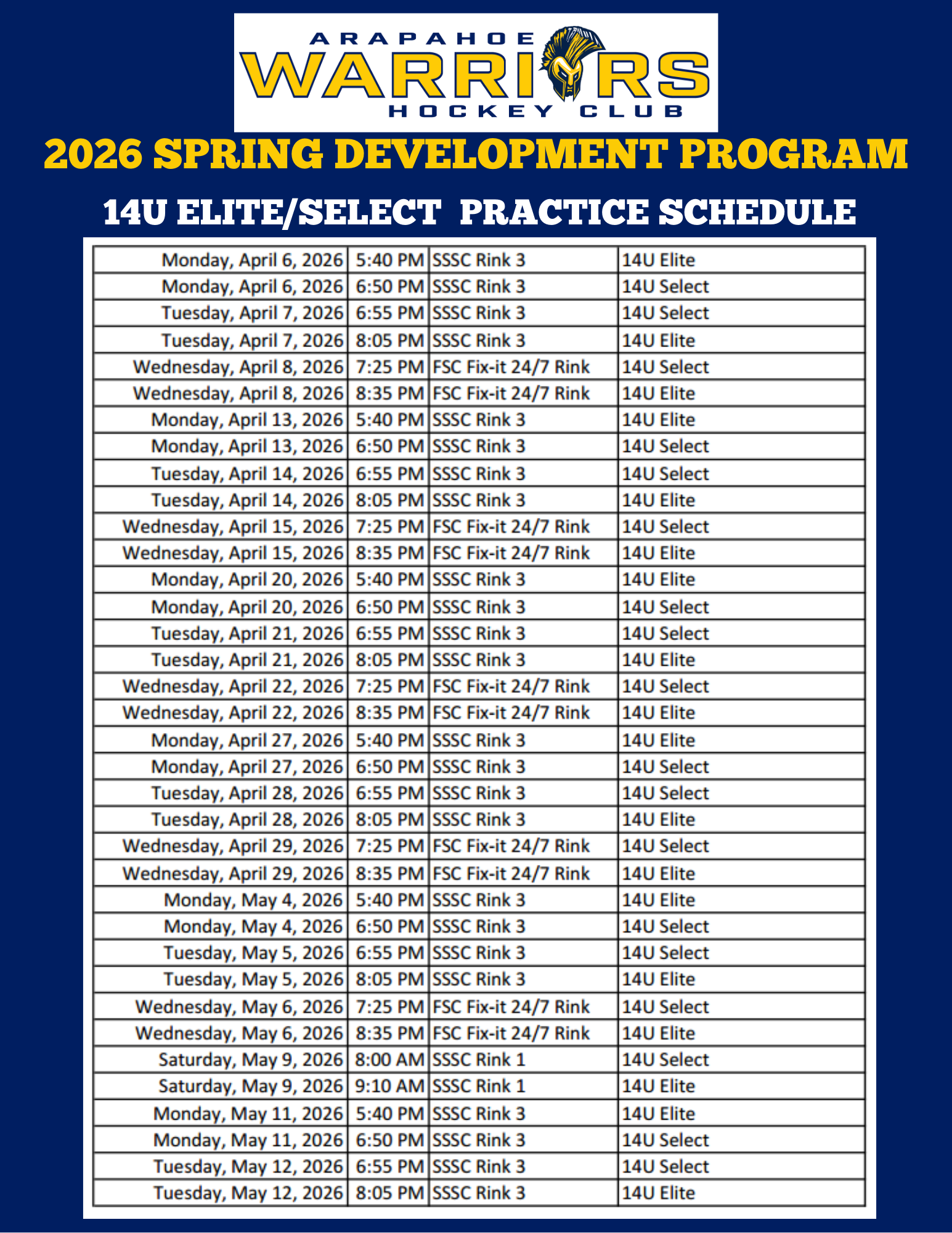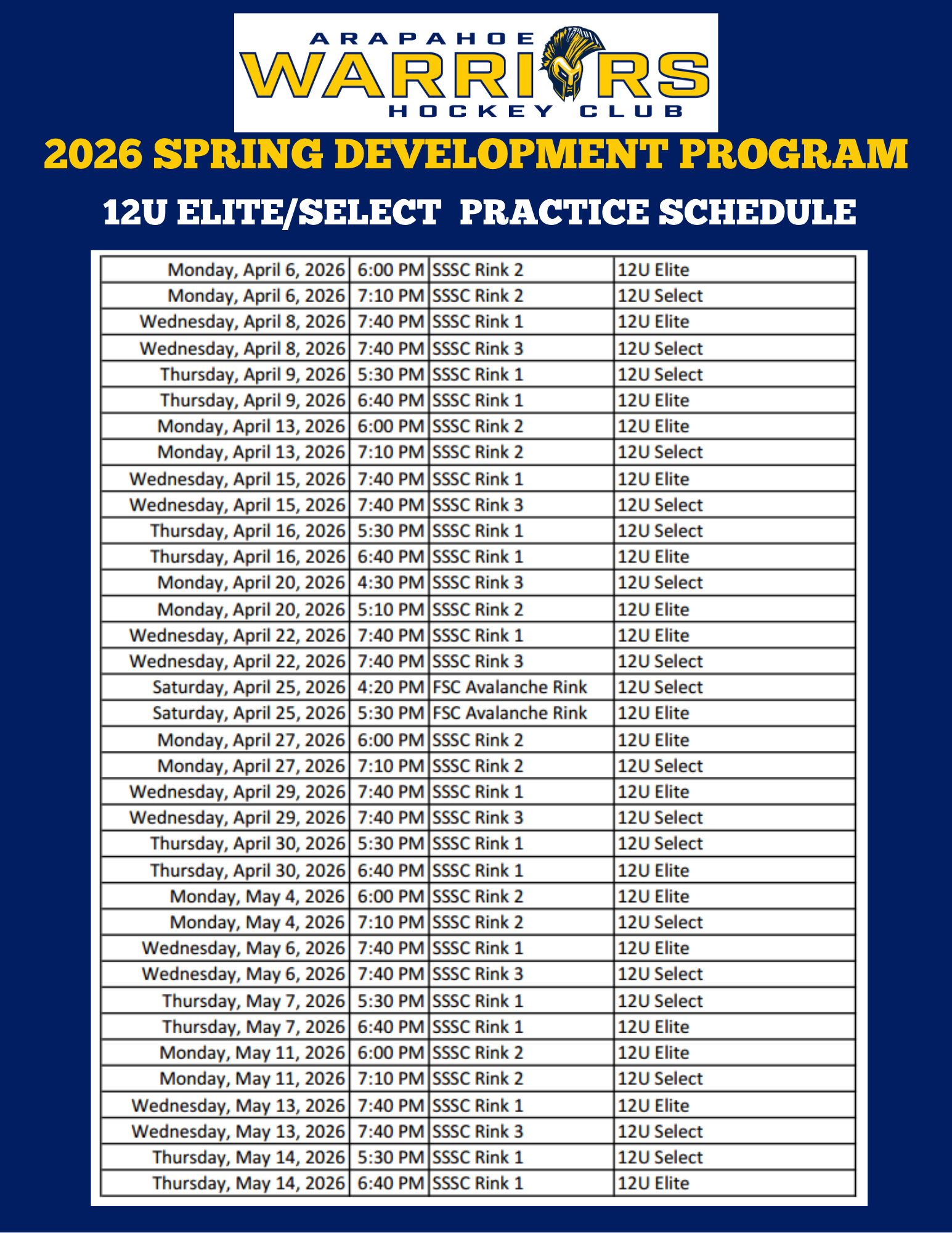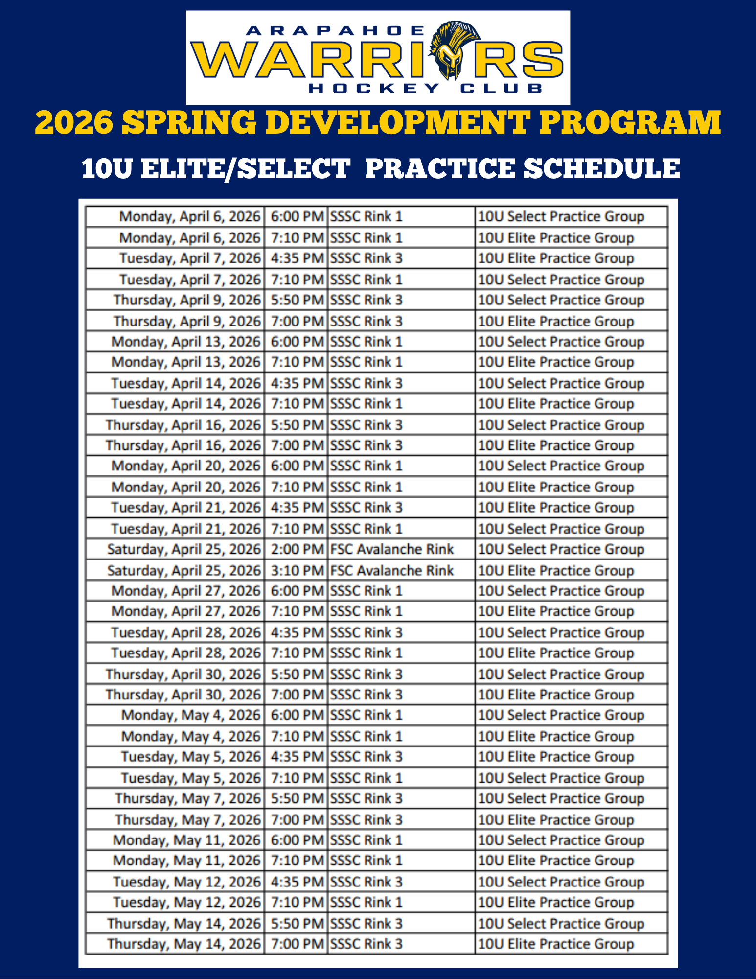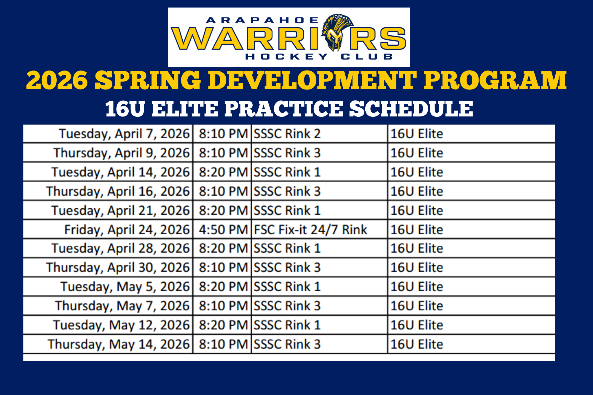 Arapahoe Travel Hockey is proud to announce its 6th Annual Spring Development Program! The development program will focus on maintaining and building competitive players’ individual skill sets, including skating, puck handling, conditioning, and overall team and individual hockey IQ.