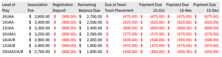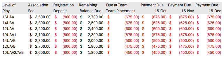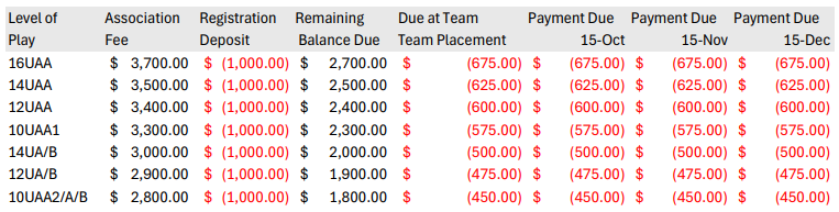 Please take the time to read the following information before registering your player for the 2025 - 2026 Season. To take advantage of the $100 Early Bird savings, sign up by July 31st.